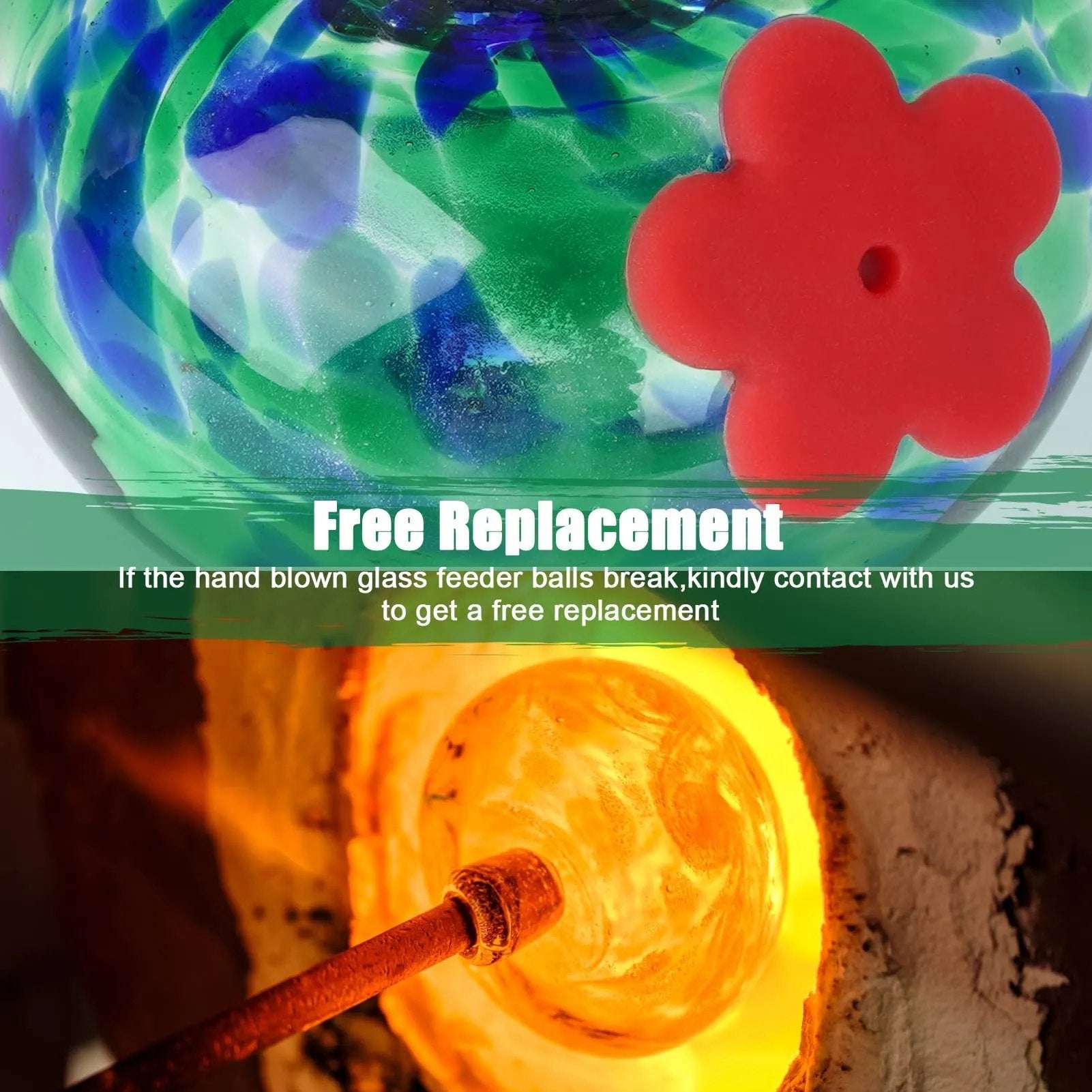 - 【Hand-Blown PVC】 Each bird feeder ball is expertly crafted by skilled artisans, featuring eye-catching red silicone flowers that not only attract hummingbirds quickly but also protect their tongues from injury.